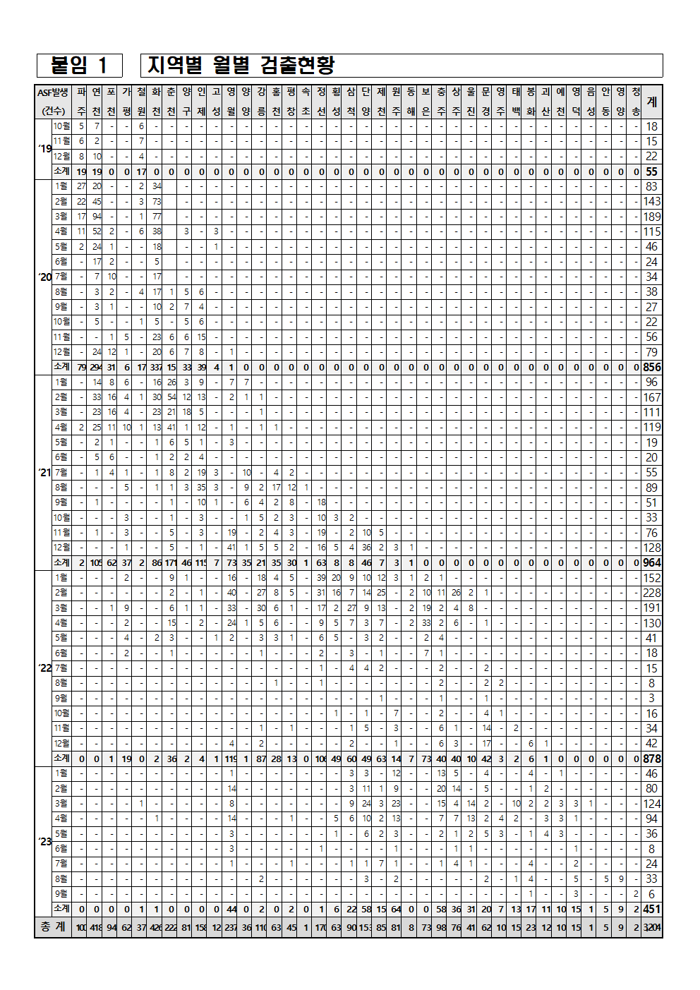 [국내 아프리카돼지열병(ASF) 발생 및 의심 관련 정보를 수시 업데이트 예정입니다. 다만, 집계에서 오류가 있을 수 있으니 참고해 보시기 바랍니다. 또한, 해당 페이지에 모든 콘텐츠의 저작권은 없습니다. 출처 표기 후 편하게 사용하시기 바랍니다. -돼지와사람]