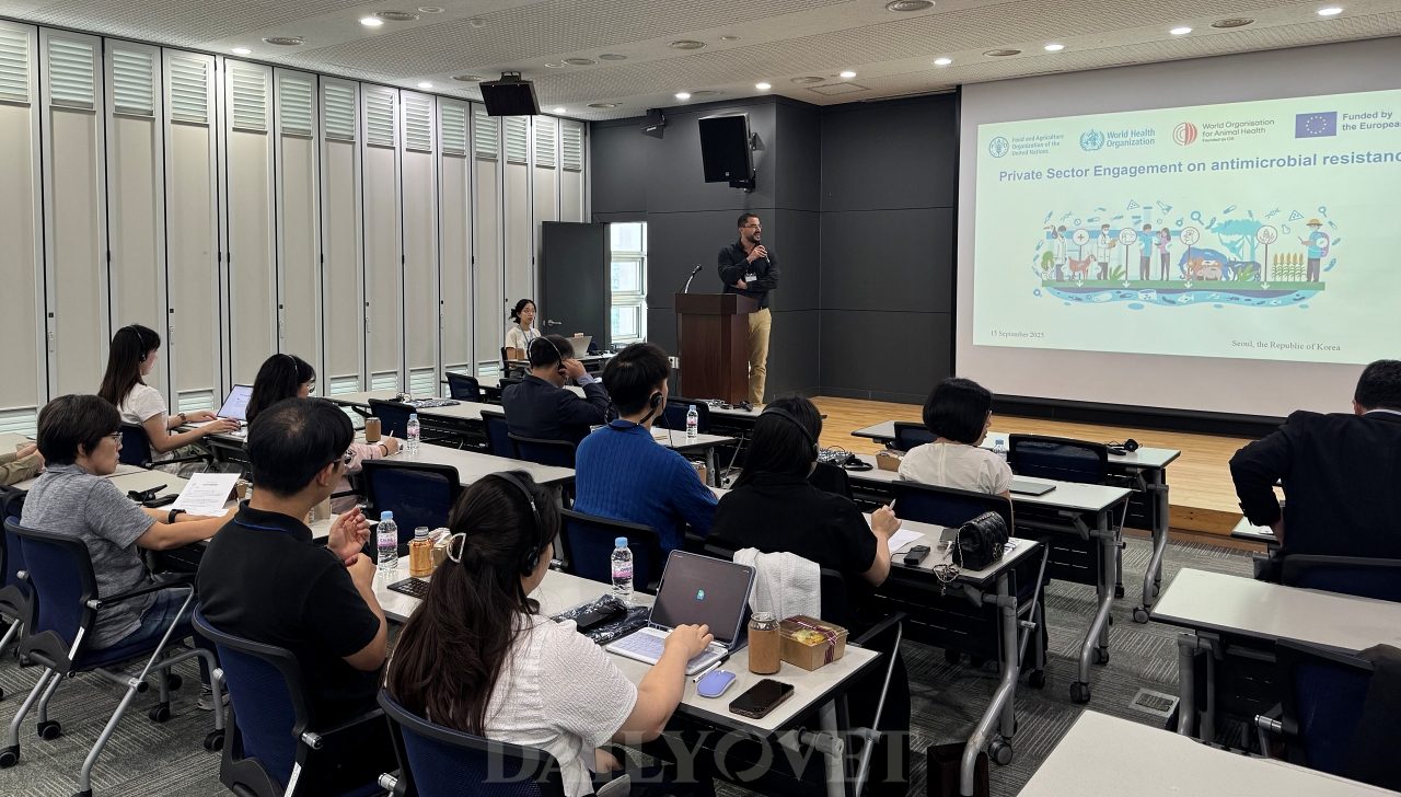FAO 한국협력연락사무소는 9월 15일(월) 서울 글로벌센터에서 원헬스 관련 민간 부문 이해관계자 및 전문가 초청 행사를 개최했다. 워크숍 성격으로 진행된 이날 행사에는 축산 관련 기업과 동물용의약품 제조사, 학계, 대한수의사회와 한국동물약품협회 등 동물용 항생제 사용과 연관된 민간 분야 종사자들이 참여했다.