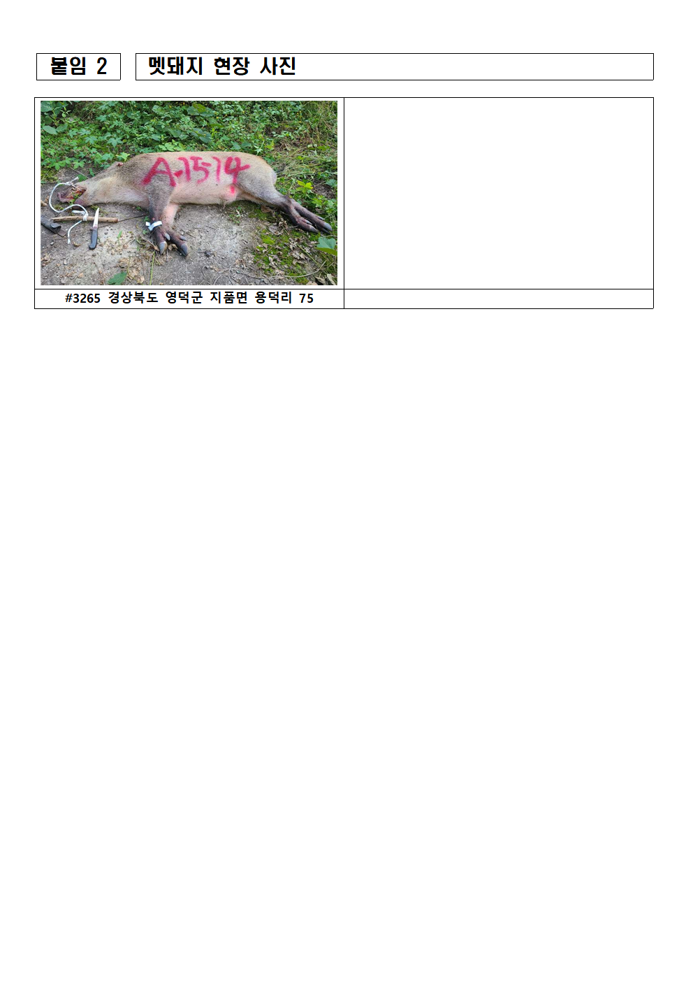 - 8.22일 경북 영덕 소재 주왕산 국립공원서 첫 감염멧돼지 발견