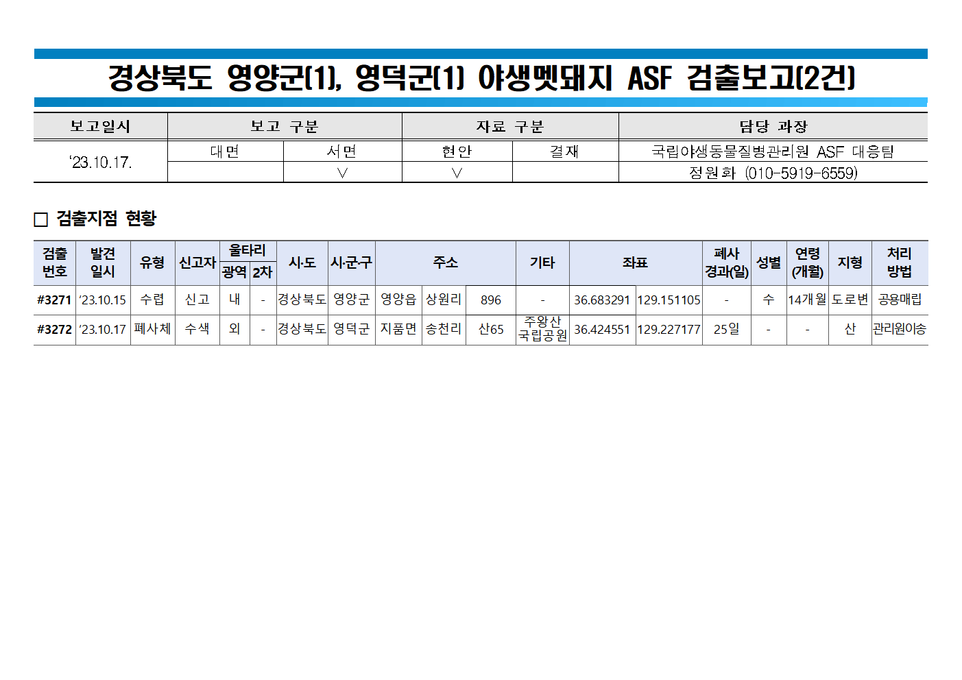 • 2023.10.18 기준 ASF 발생동향