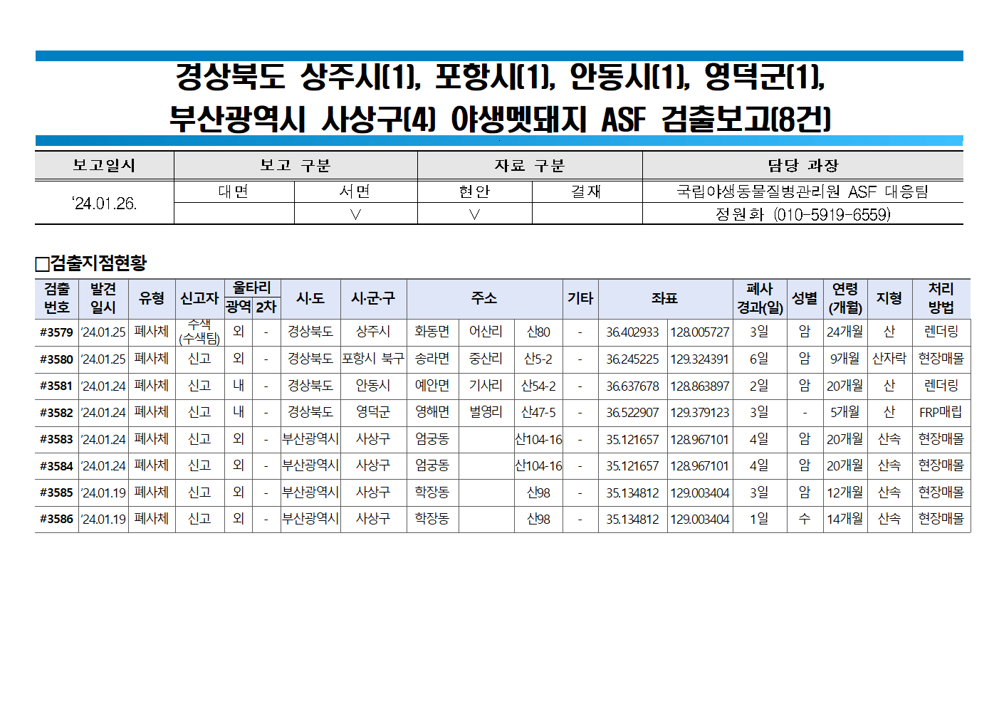 - 경북 1건: 영덕 1(축산면/'24.01.16)