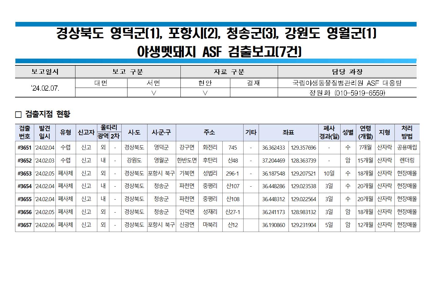 - 경북 1건: 영덕 1(축산면/'24.01.16)