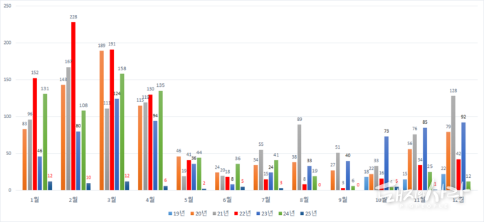 ▶월별 ASF 야생멧돼지 발견 현황@돼지와사람 편집