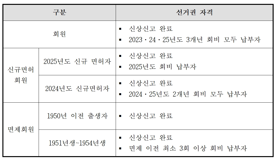 회원별 선거권 자격 요건 (자료 : 선거관리위원회)